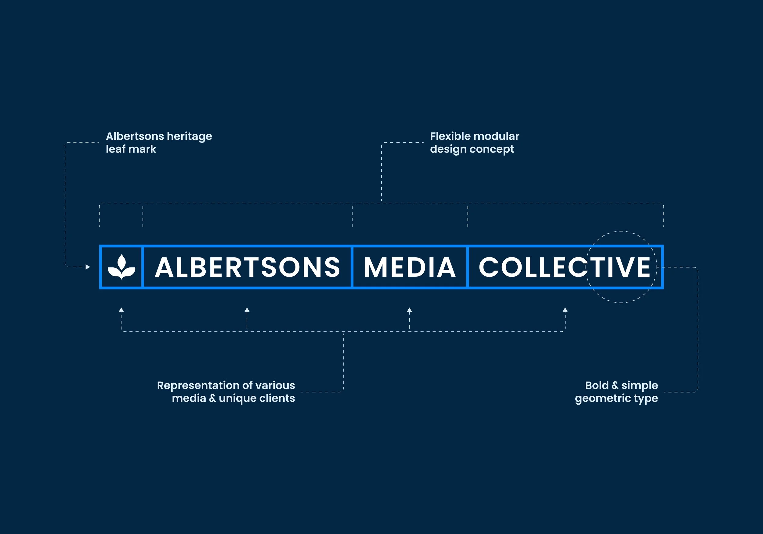 One key initiative for Albertsons Companies in 2022 was the launch of a next-generation retail media network rooted in connections, technology and innovation. For this effort, I led the internal creative team to develop a visual identity rooted in the beginnings of a new Albertsons brand platform. A distinctively flexible, modular logo mark is representative of the media network's variable solutions for their broad client base and ever-changing marketplace. Nods to the company's heritage are brought in through the use the iconic leaf mark and an updated take on its classic blue color palette.